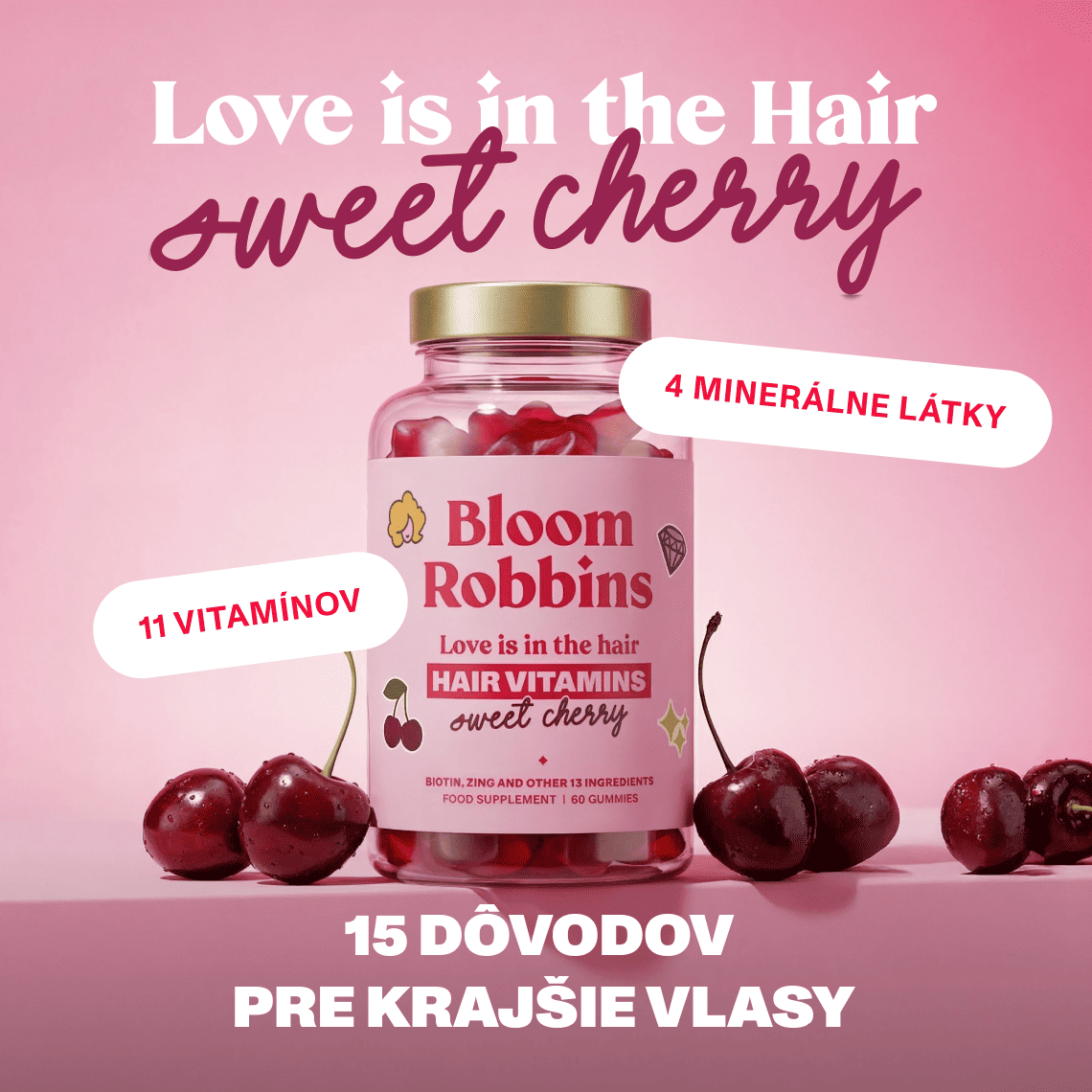 CHERRY LIMITKA - VITAMÍNY NA VLASY S BIOTÍNOM - GUMÍKY LOVE is in the HAIR