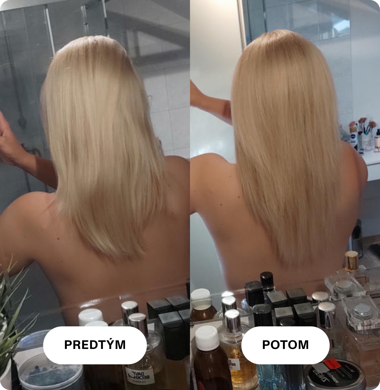 Veľmi som sa tešila na Vaše produkty a som veľmi prekvapená a spokojná ich účinkom 😊Takto vyzerajú moje vlasy po 3. mesiacoch užívania.