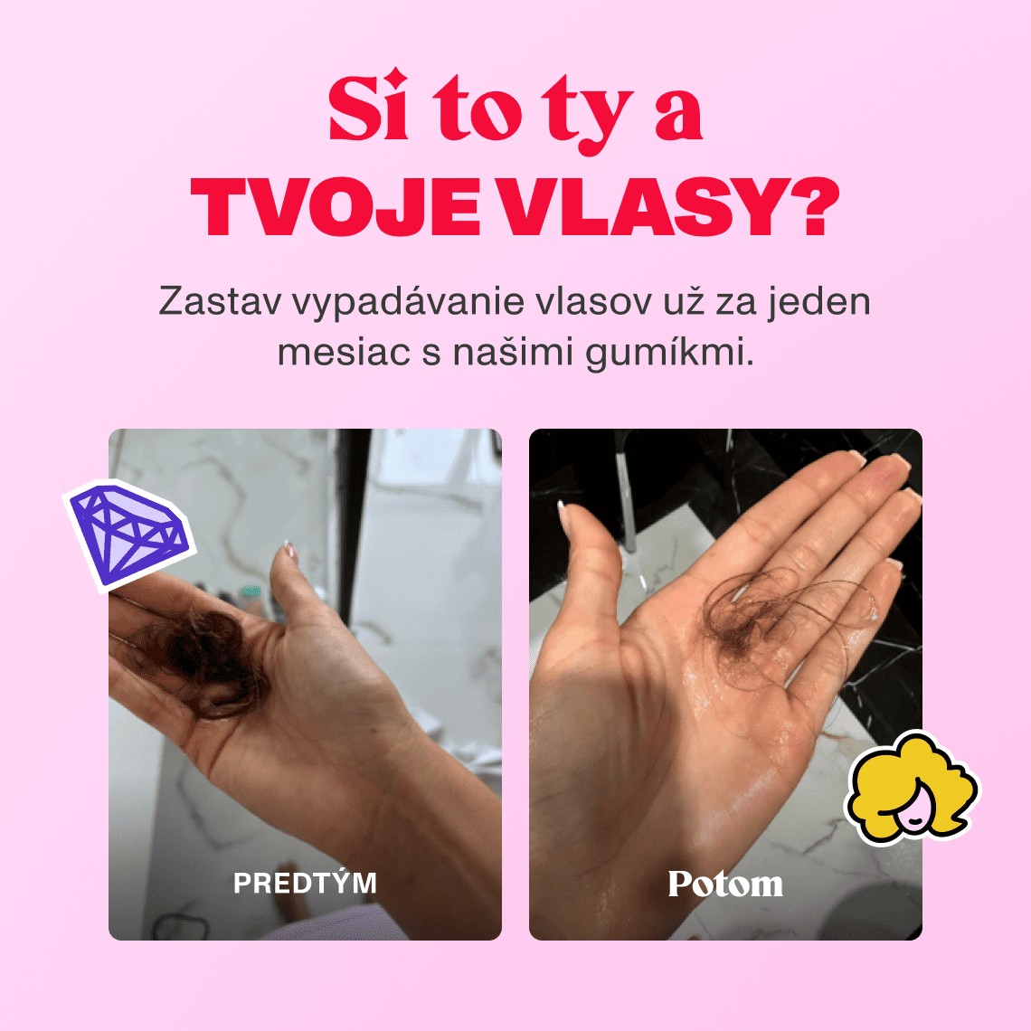 Moje vlasy boli po pôrode dosť zničené, ale vďaka gumídkom sa konečne dostávajú do formy a okrem nových baby vláskov aj rýchlejšie rastú.