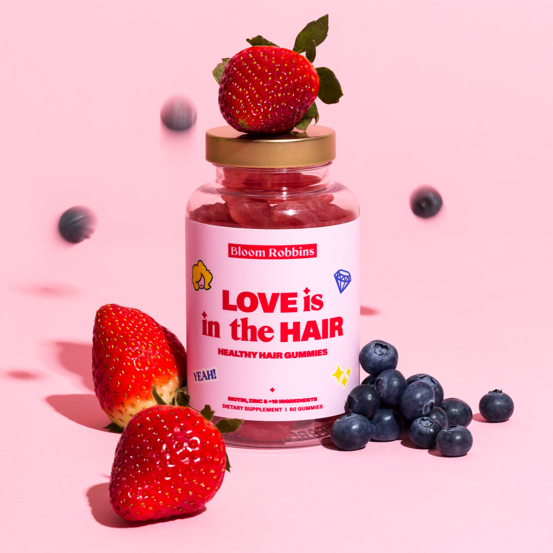 Love is in the hair gummies je výživový doplnok na vlasy vo forme gumových cukríkov s 11 vitamínmi a 4 minerálnymi látkami.