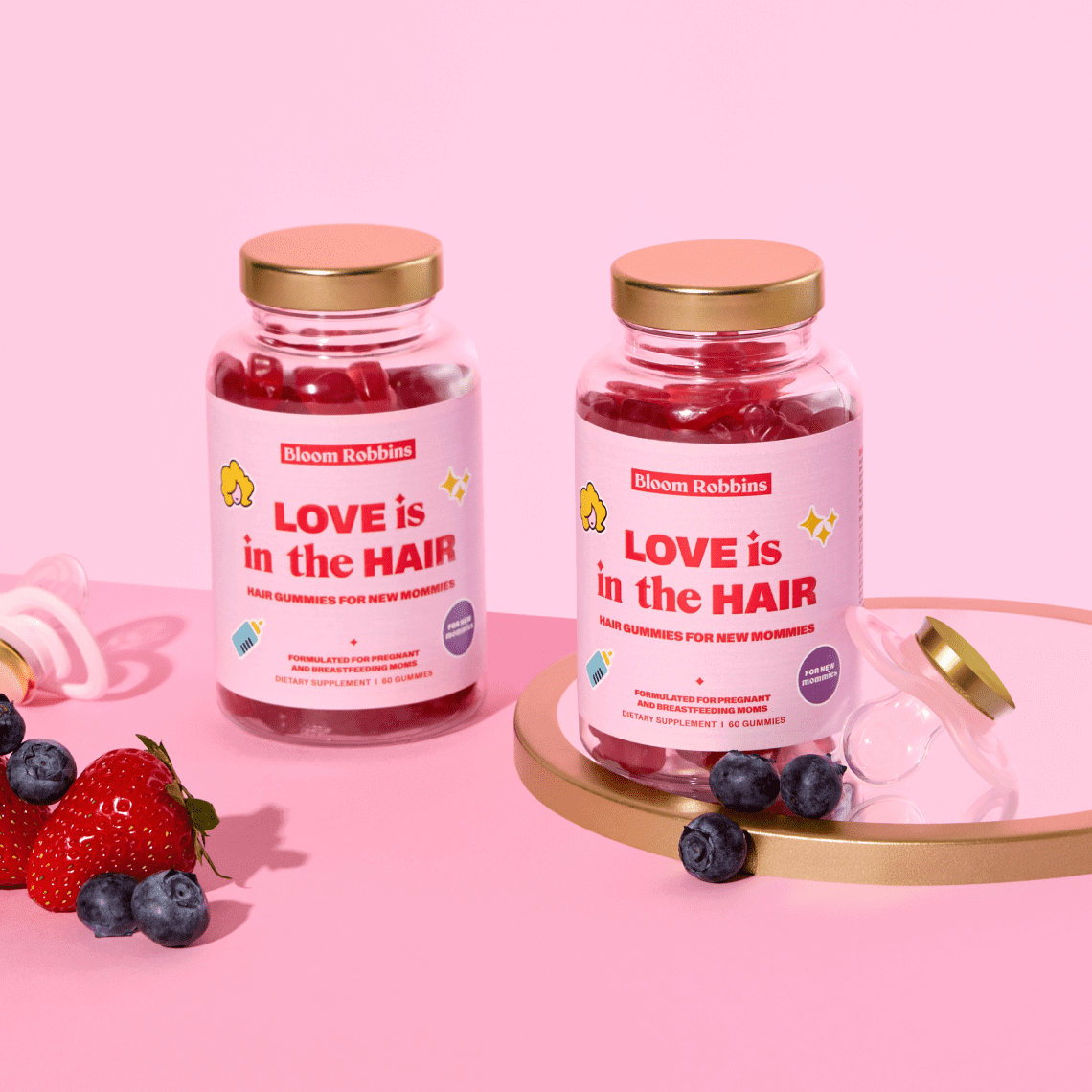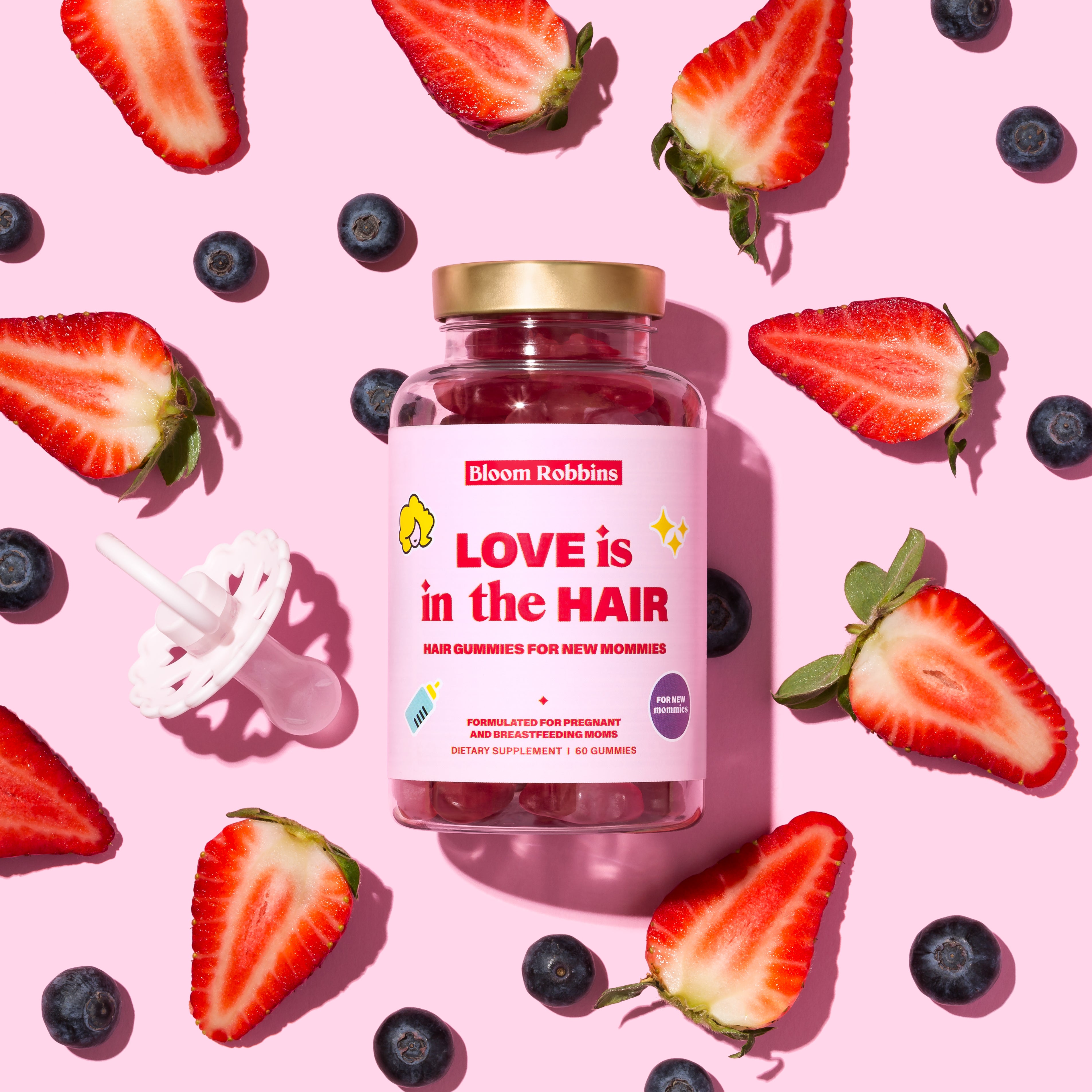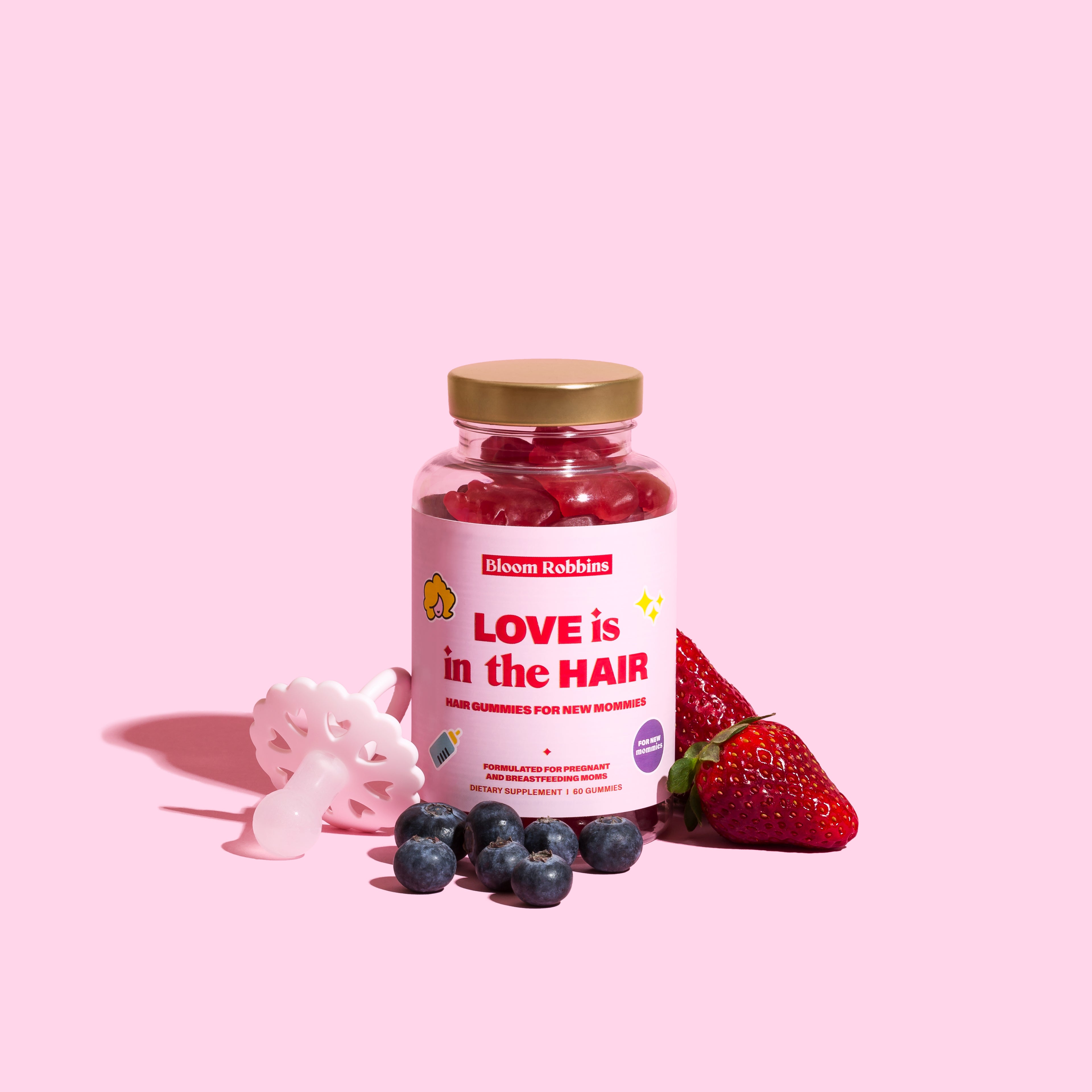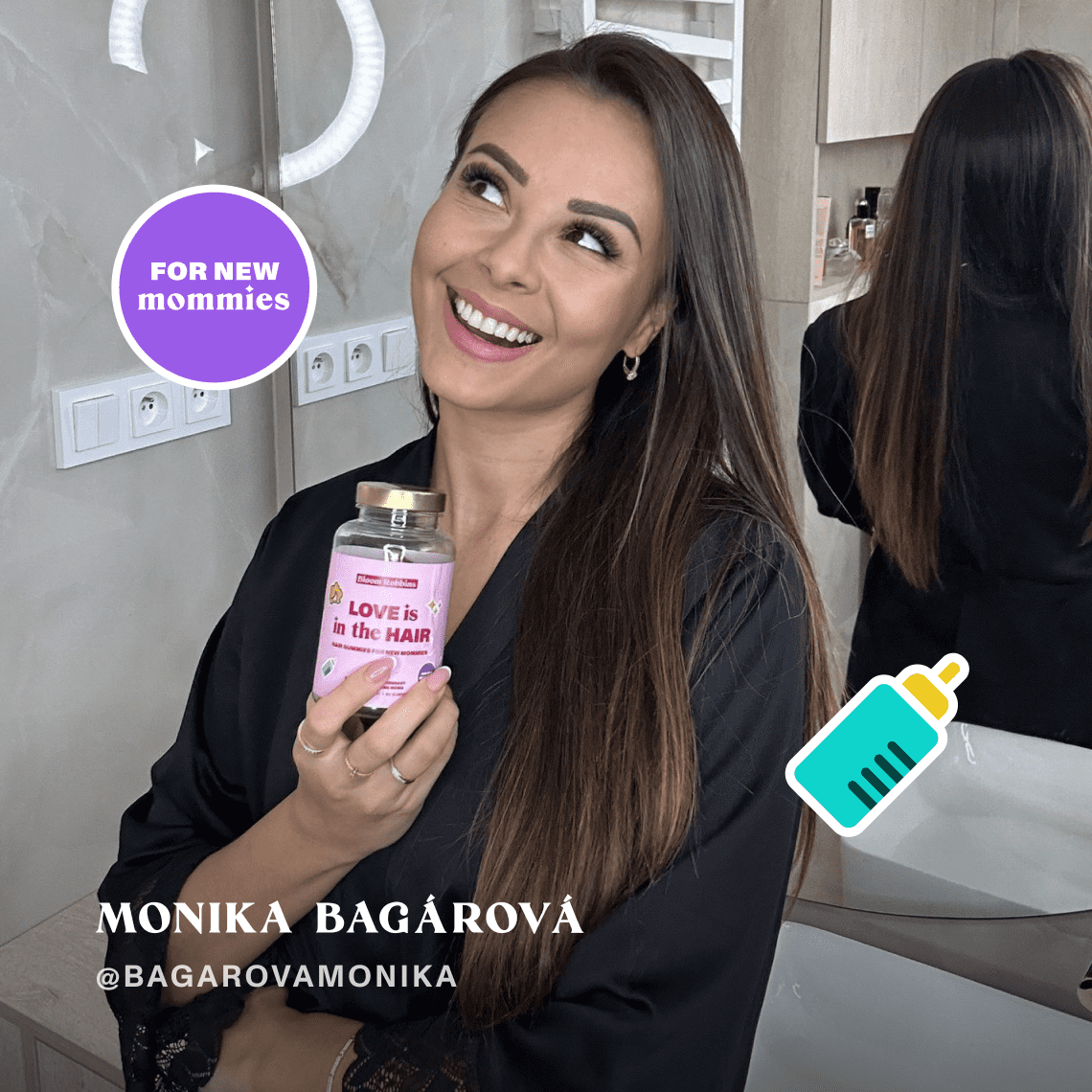 Love is in the hair gummies for mummies je výživový doplnok vo forme gumových cukríkov s 8 vitamínmi a 4 minerálnymi látkami.