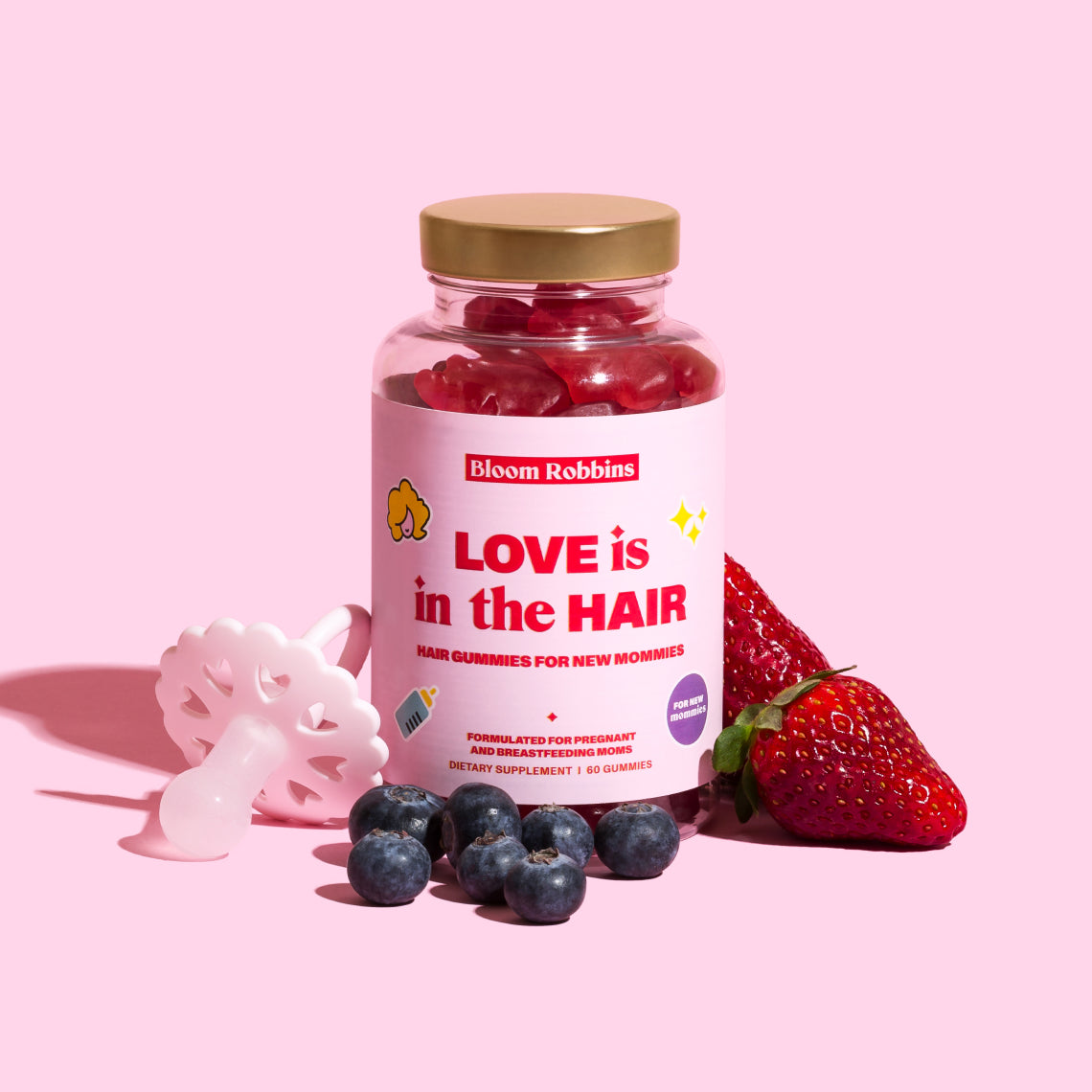 Love is in the hair gummies for mummies je výživový doplnok vo forme gumových cukríkov s 8 vitamínmi a 4 minerálnymi látkami.